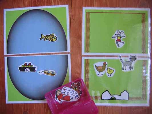 Put it in the box. Put it on the farm. Put it on the pond. Atd.